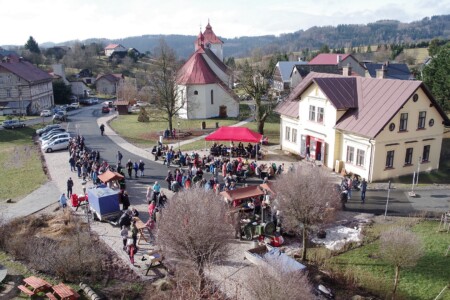 Tuláčkova náves, náš „pupek světa“ a „střed vesmíru“ je pojmenována po místním truchlosměšném hrdinovi prusko-rakouské války Jiřím Václavu Tuláčkovi. Ten sice v roce 1866 pruská vojska nezdolal, ale do historie se nesmazatelně zapsal. Od roku 2011 nese náves jeho jméno a od roku 2016 také pomník s jeho soškou (titáni snesou i menší měřítko).